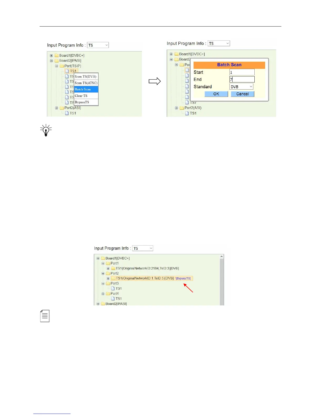 multiplexed. See the following image, a *[Bypass TS] follows the scanned TS1 as a mark.