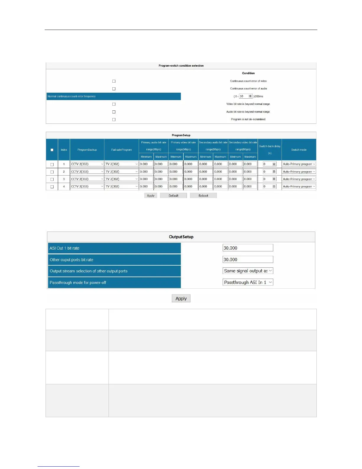 Pass-through ASI In 1 (Primary), Pass-through ASI In 2 (Secondary), Auto