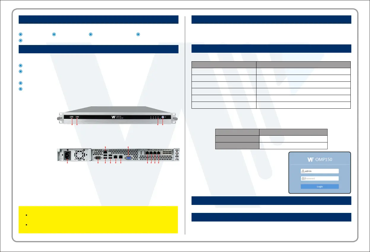Each OMP150 built-in Ethernet port has a corresponding default IP address.