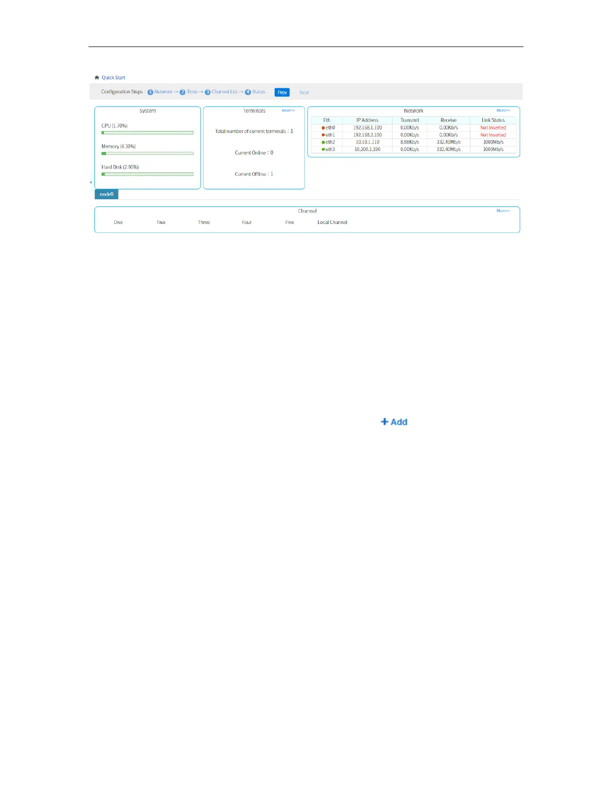 Channel tab allows you to add input stream, delete, import, export service configuration
