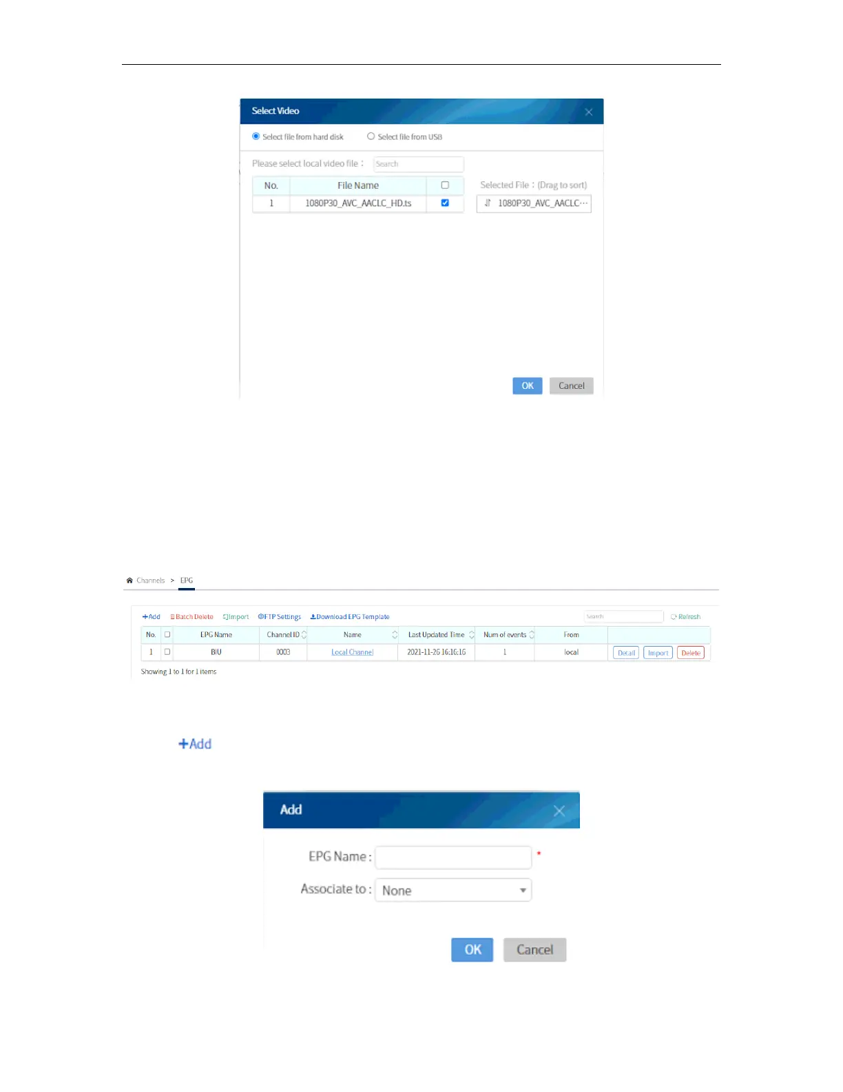Click to to add an EPG. After assigning a name and selecting which program to