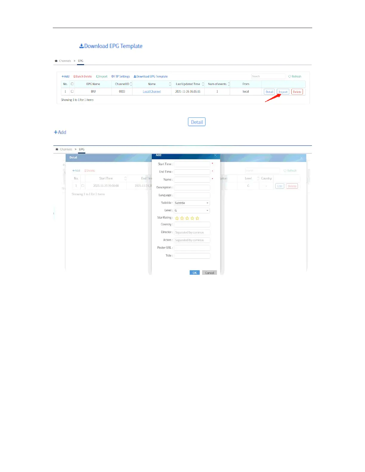 You can edit manually the EPG by clicking the . A window will pop up and click