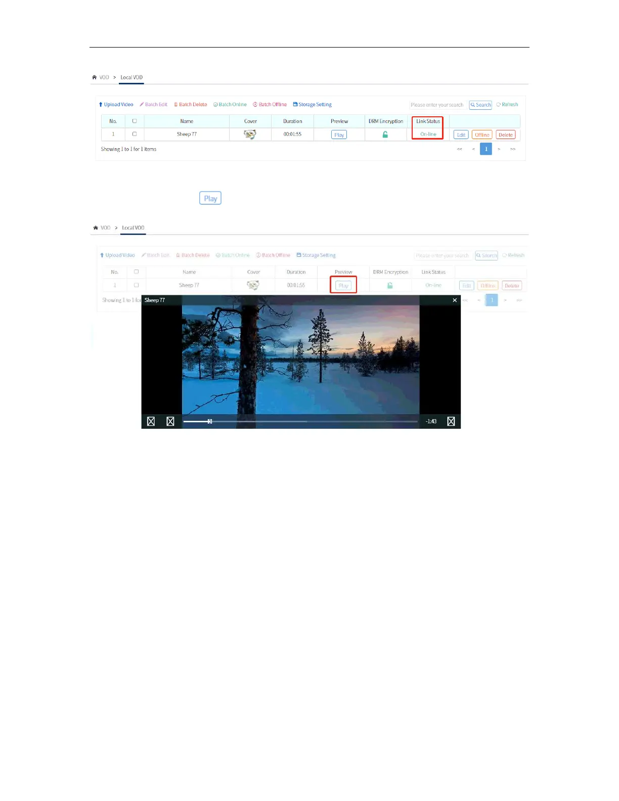 Once the Status is “Offline”, you can now click on “Online” to let the video to appear on