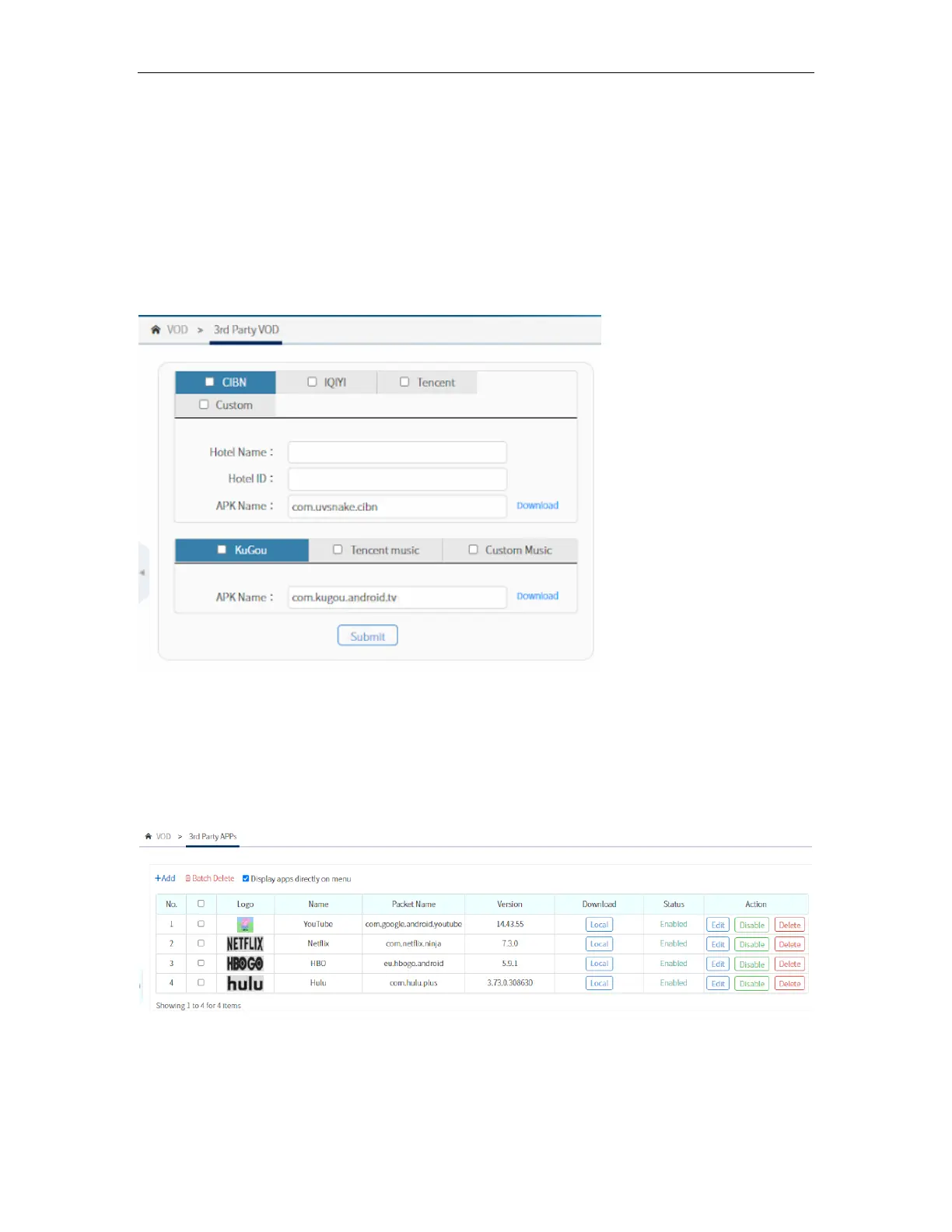 Party VOD is for downloading a third-party VOD. The applications that you add will be