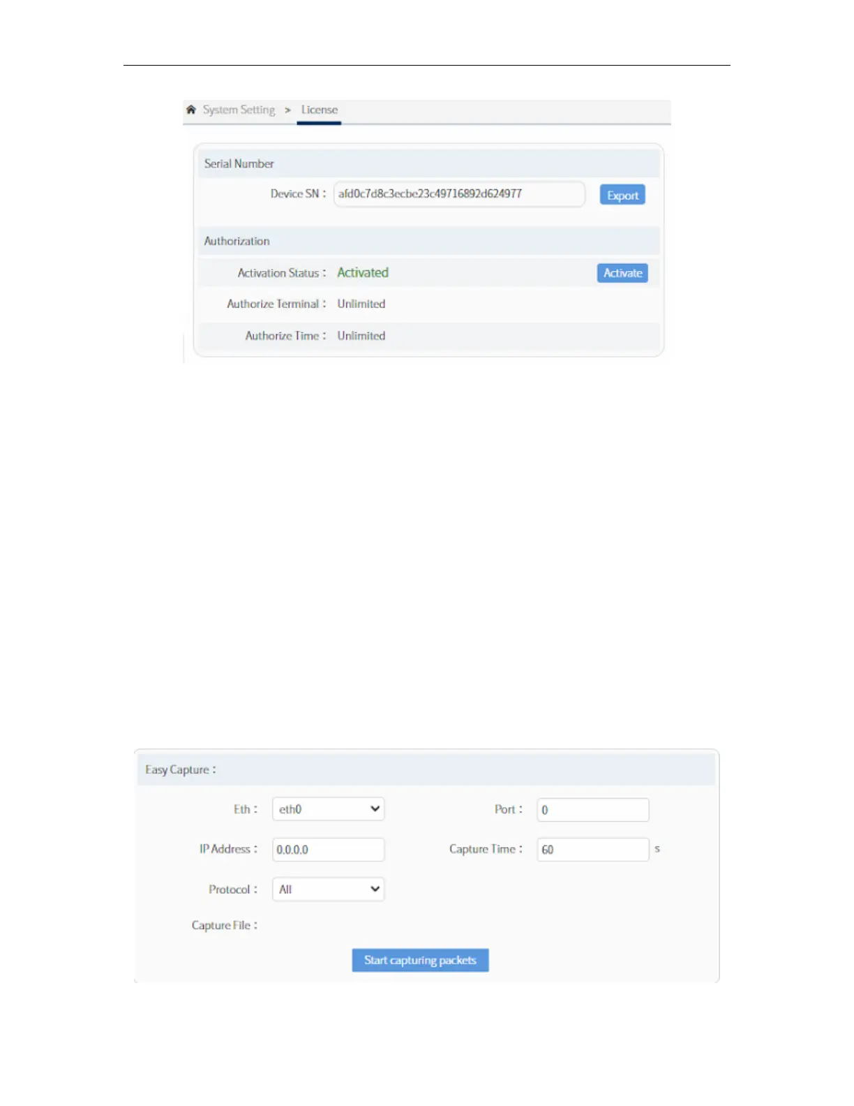 issue encountered on unit. This allows you to capture the traffic on a certain port to help