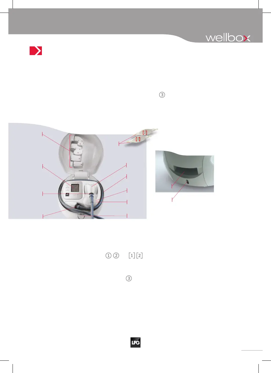 管 , 儀器頂蓋提供一個放置其他四個按摩頭組,以及