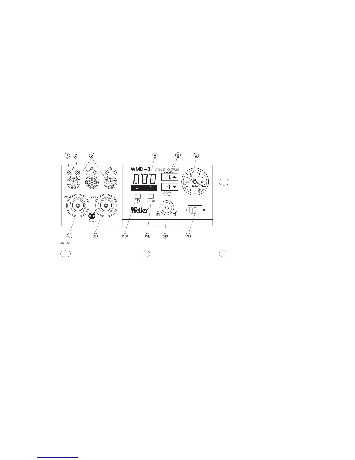 5. aansluitingen voor soldeerapparaten (3 kanalen)