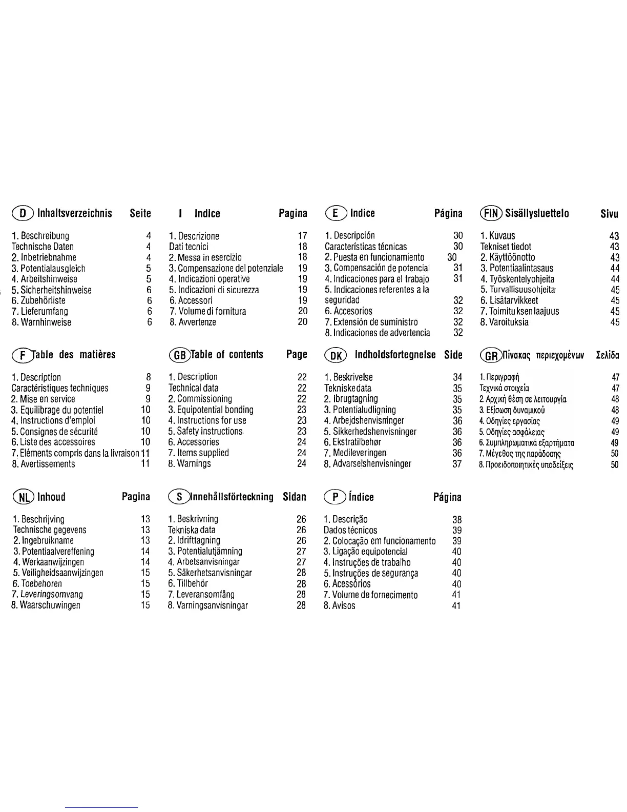 Weller WSD 130 - Table of Contents