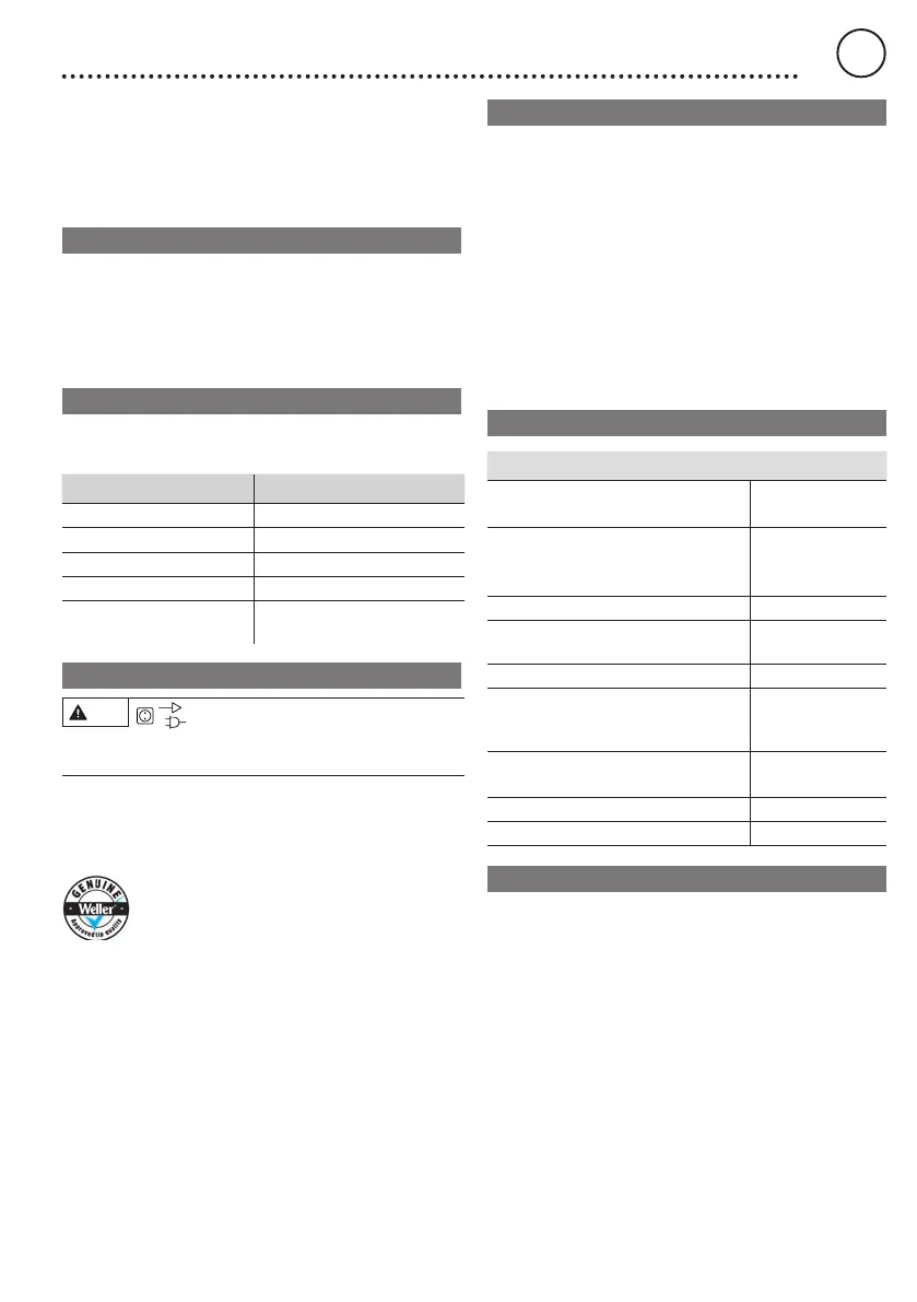 반드시 Weller사의 트레이닝을 받은 전문수리 인원이 수리를