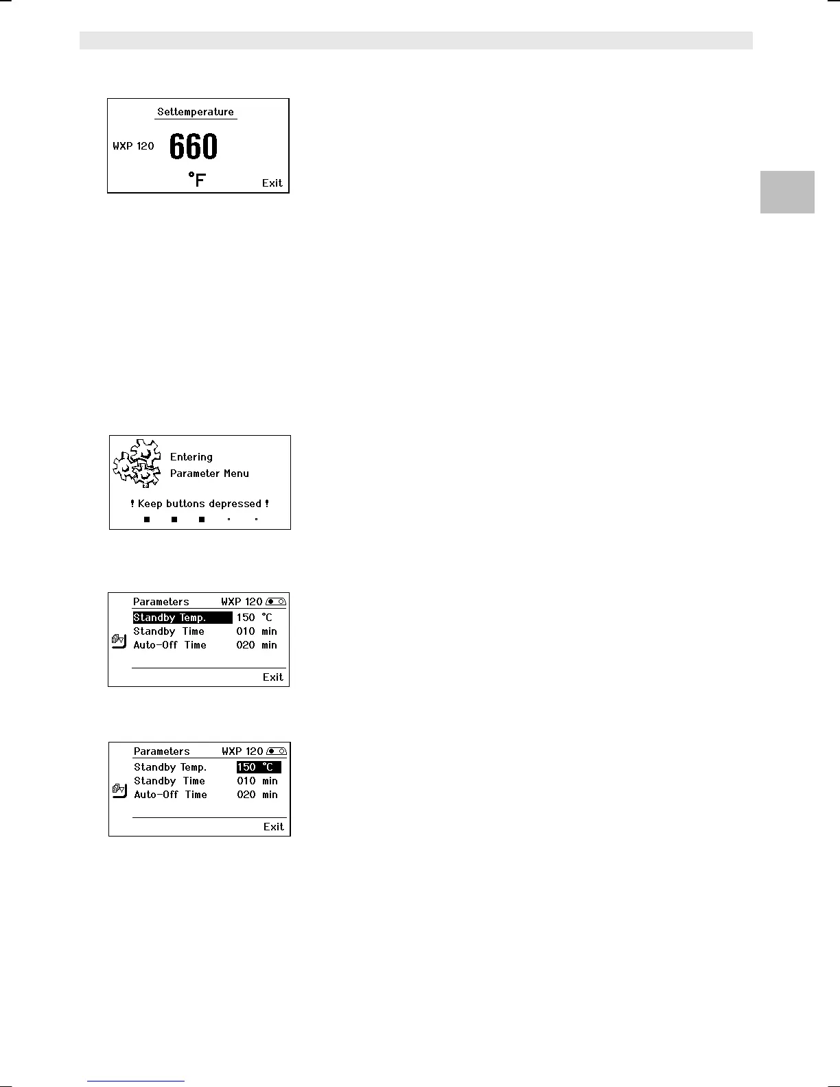 Mientras que el aparato pasa al menú de parámetros aparecerá