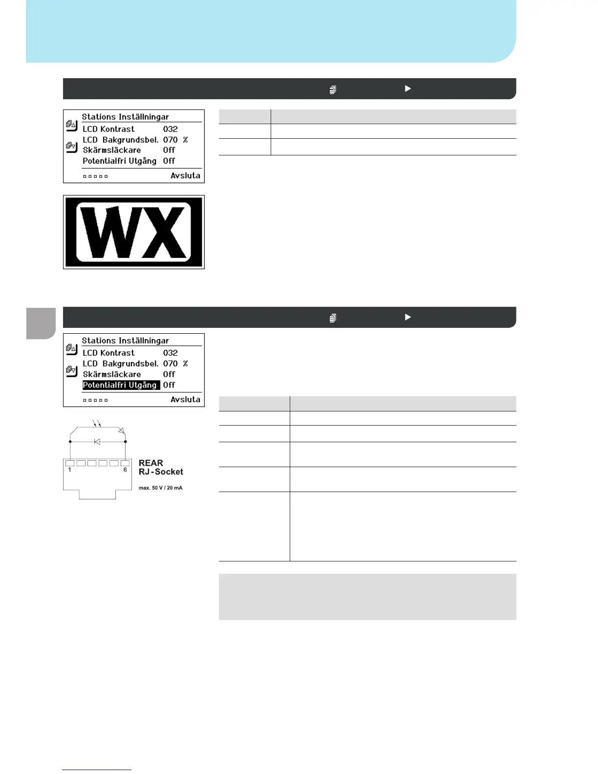 Skärmsläckare Stationsparametrar 2