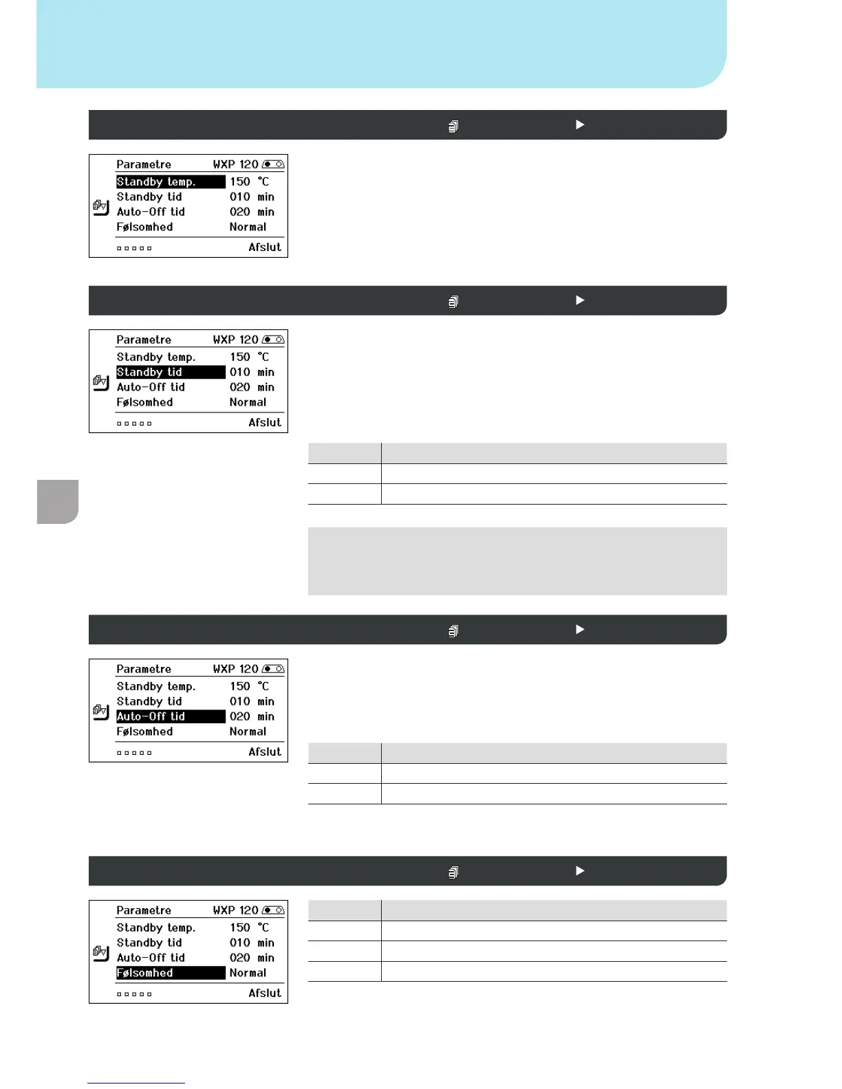 Standby tid (temperaturafbrydelse) Parametermenuen 1