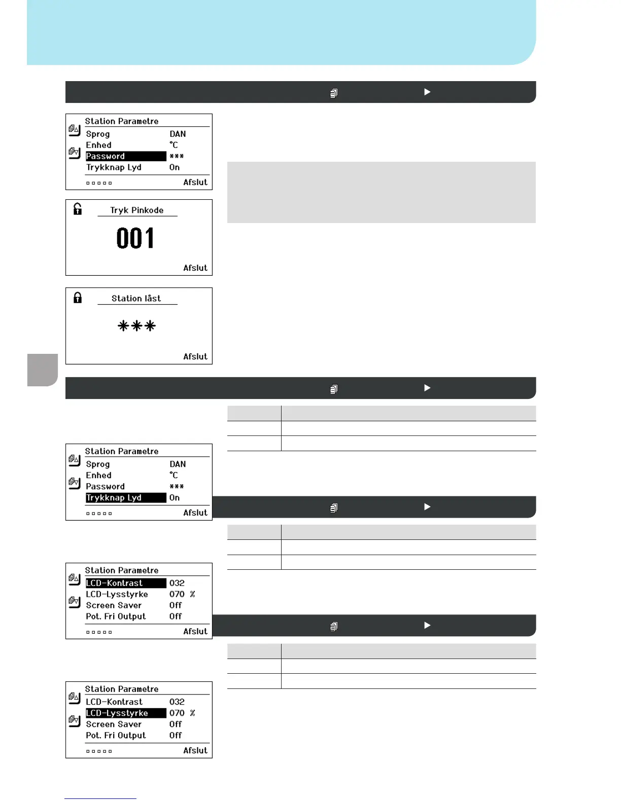 Adgangskode (låsefunktion) Stationsparameter 1