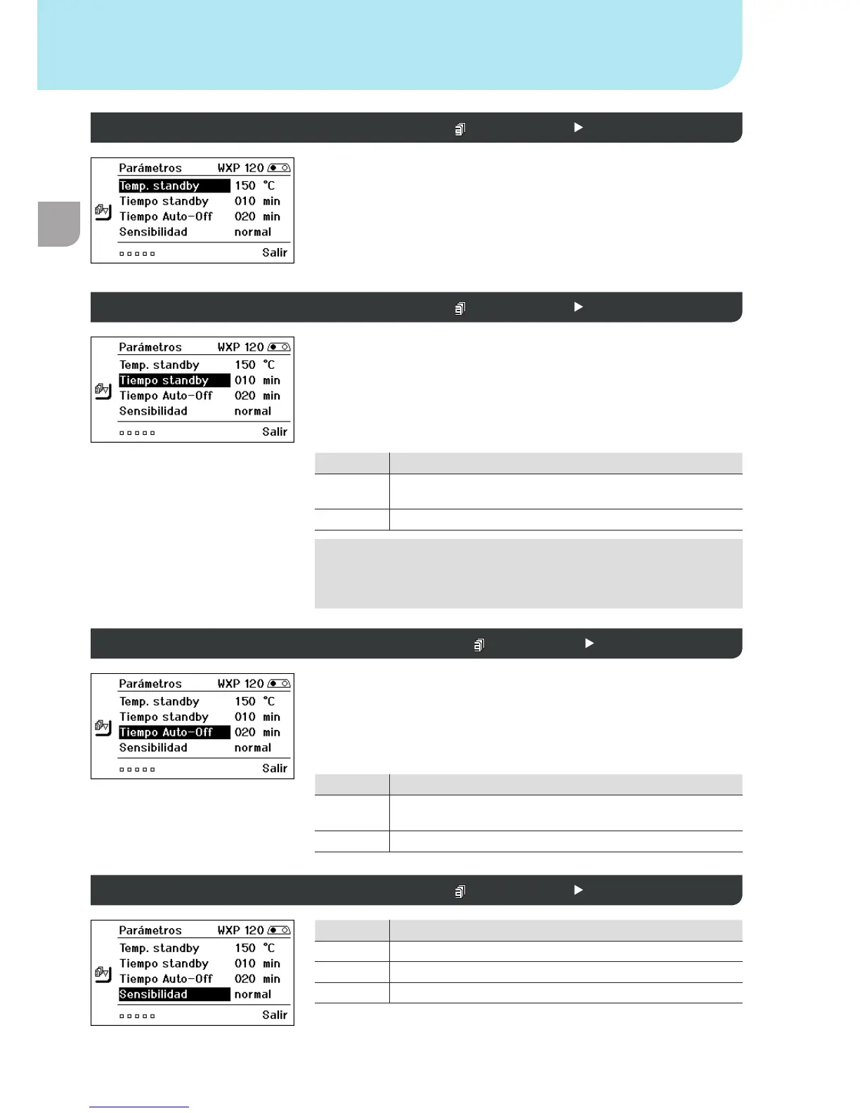 Tiempo AUTO-OFF (tiempo desconexión automática) Menú de parámetros 1