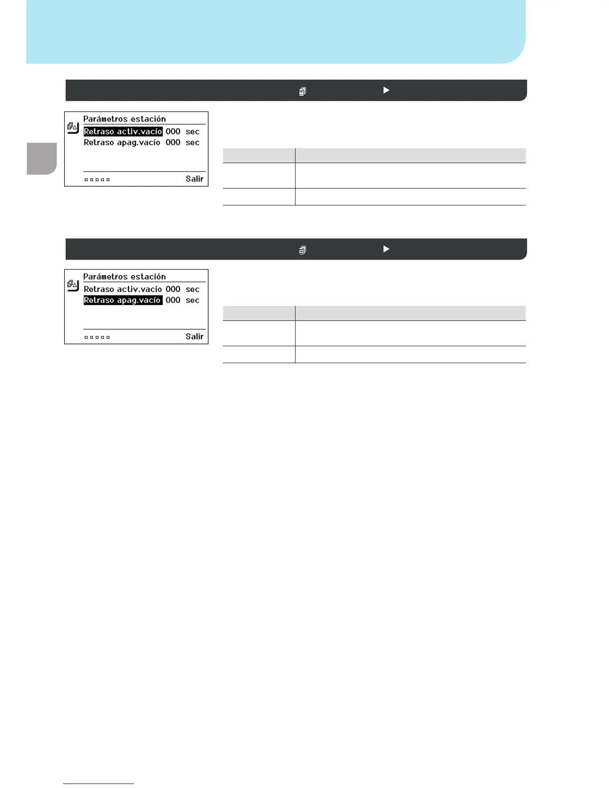 Vacío conexión retardada * Parámetros de la estación 3