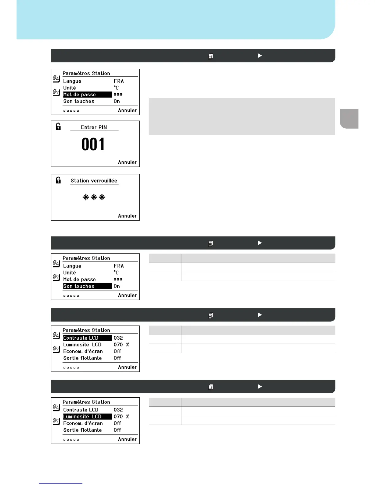 Mot de passe (fonction de verrouillage) Paramètres de station 1