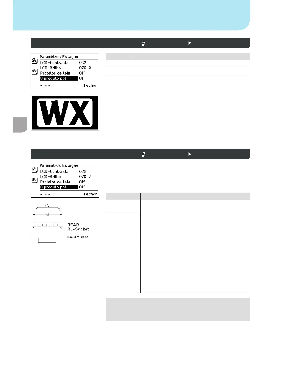 Protecção de ecrã Parâmetros da estação 2