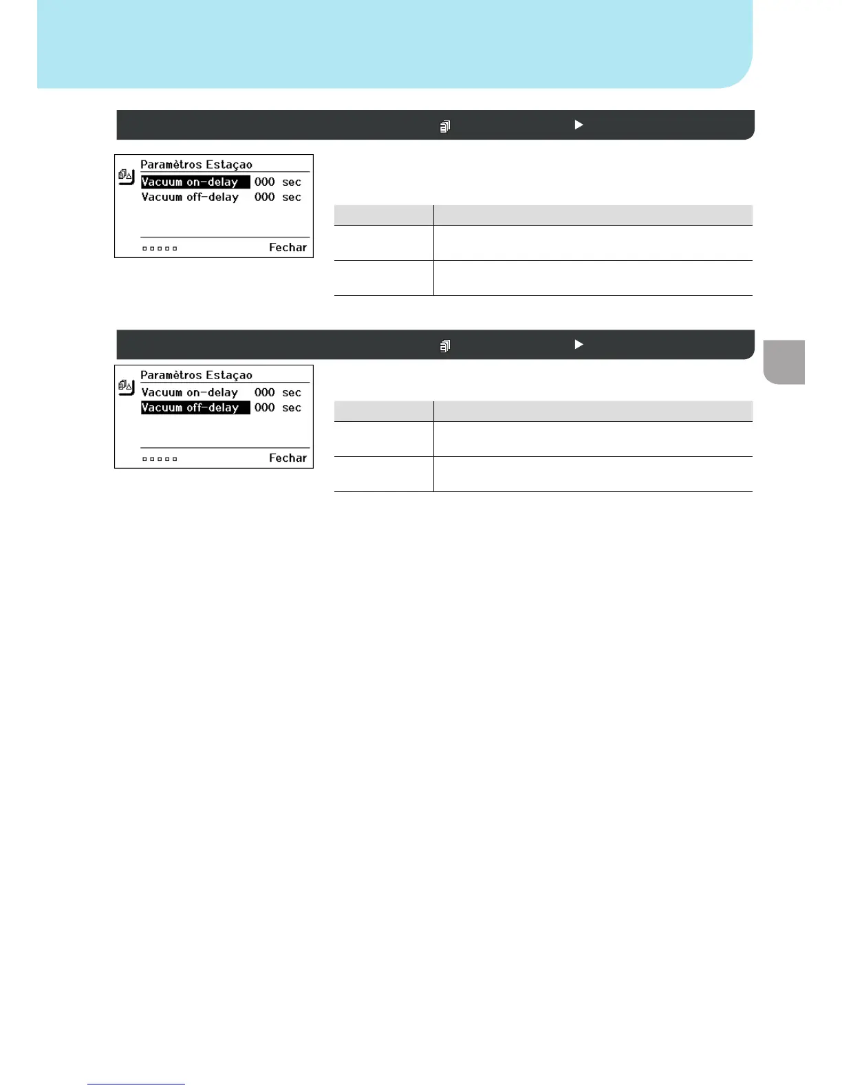 Funcionamento anterior do vácuo * Parâmetros da estação 3