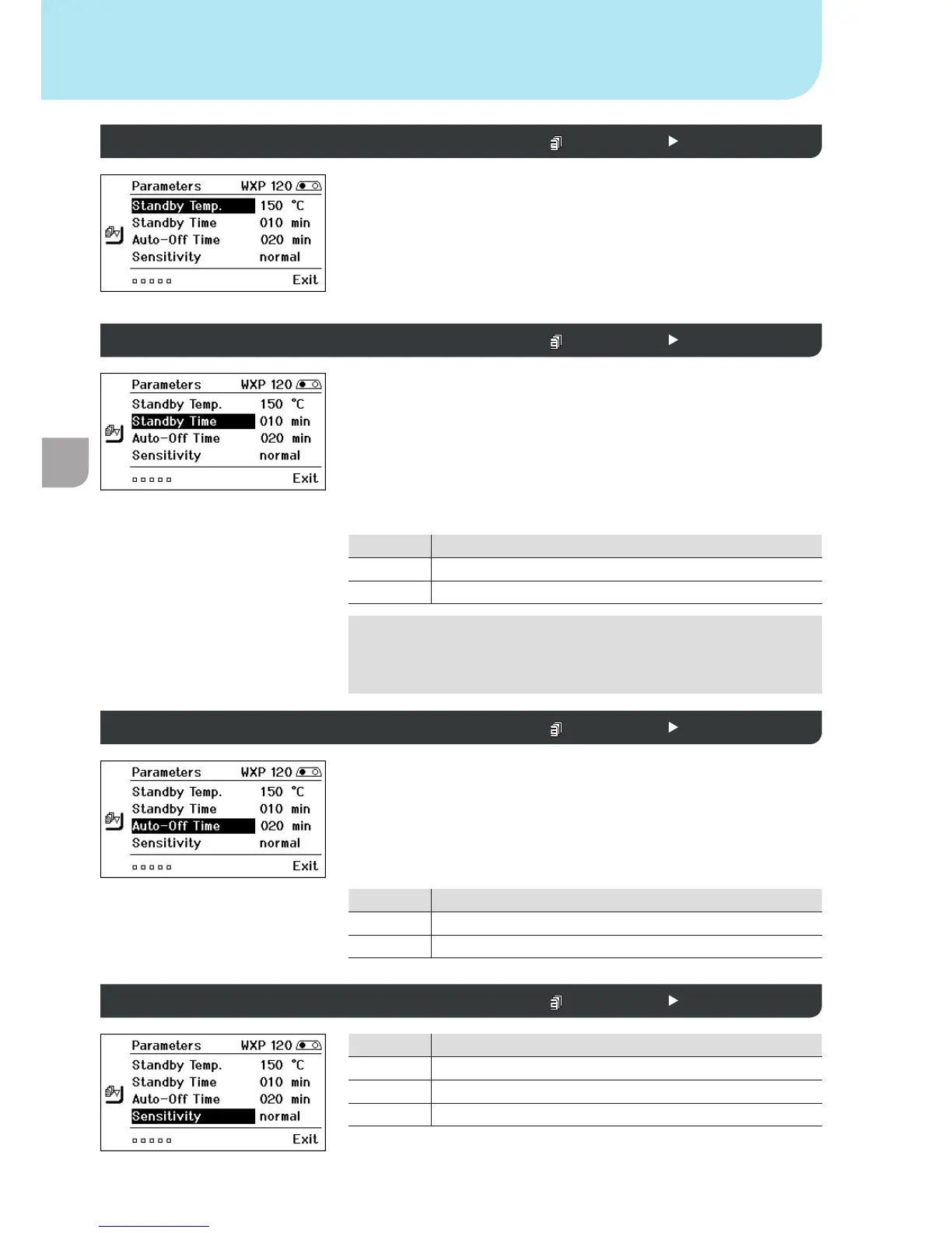 Stand-bytijd (temperatuuruitschakeling) Parametermenu 1