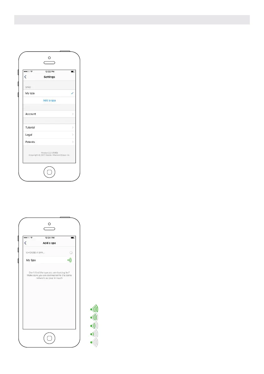 ters) is illustrated on the Select a hot tub page. There are 5 possibile states: