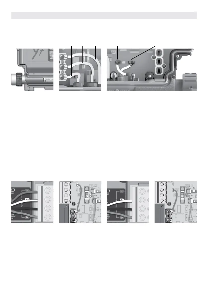 All heater connections are accessible when the cover is removed. Connections include the in.flo dry-fire protection, hi-limit/
