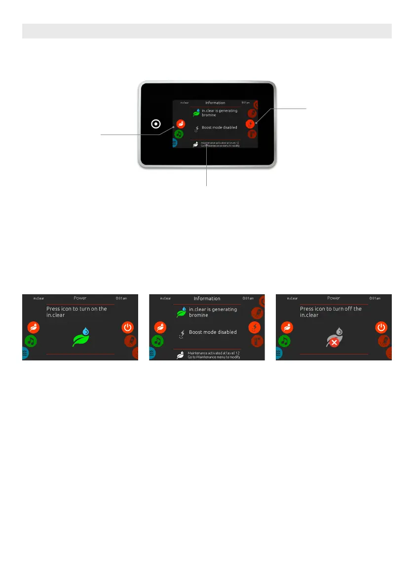 To select the sanitization mode, slide the left wheel up or down until the in.clear icon menu is highlighted in the