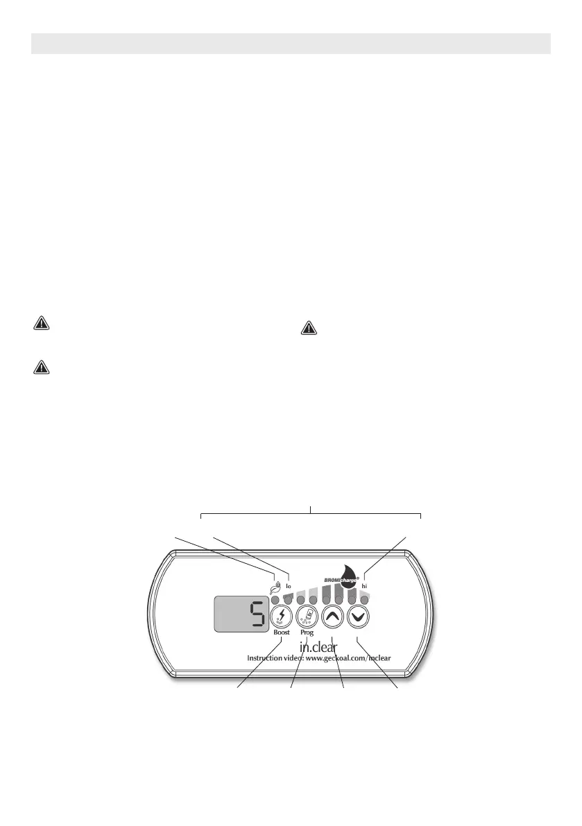 This manual details the functions of the in.clear with the default keypad (in.k200). If your spa pack uses a compatible keypad