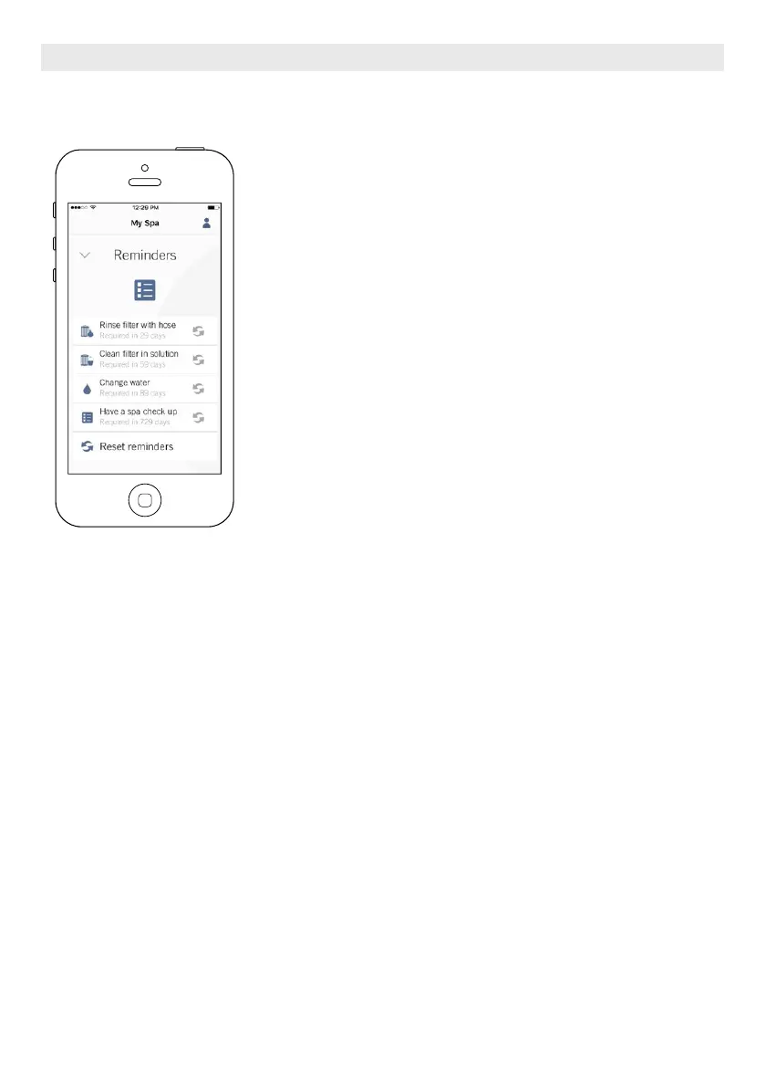 on your spa, such as rinse filter or clean filter. Each task has its own reminder