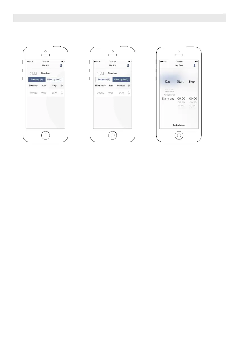 Touch the Economy tab to modify the economy schedules and Filter cycle tab for the filtration schedules. You can add