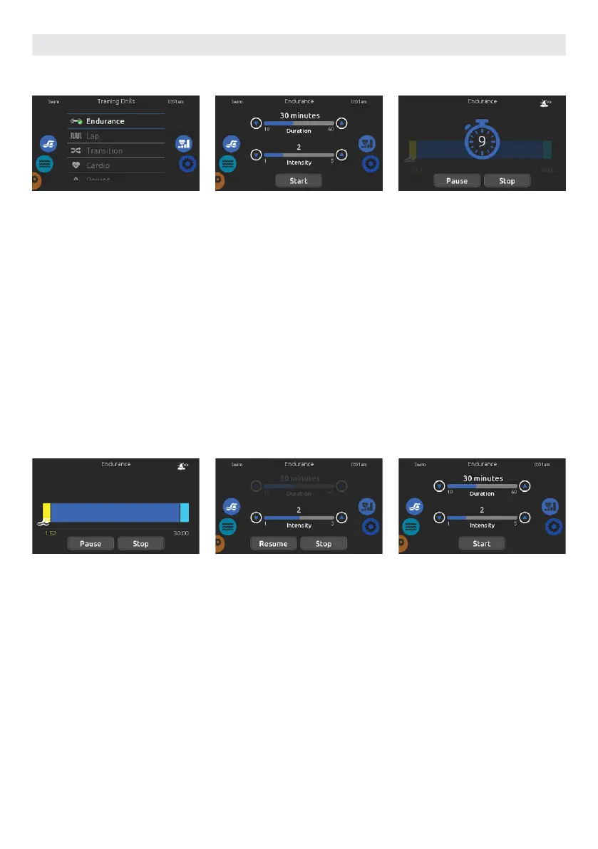 Touch Pause to suspend your swim