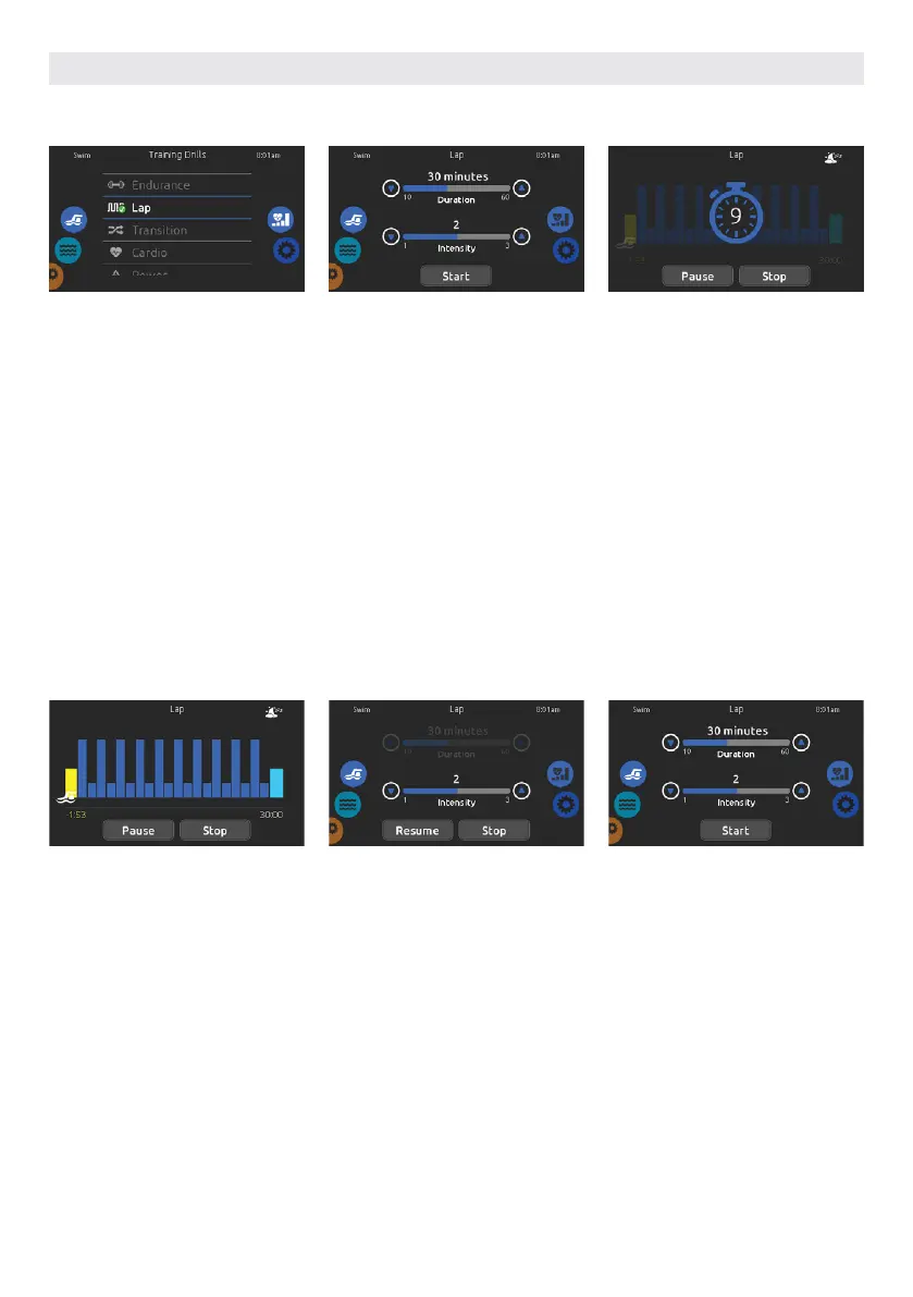 Touch Pause to suspend your swim