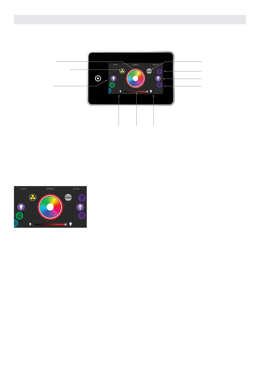 By default, the in.mix selects Zone 2 when you access the menu. To select the color mode, slide the left wheel up