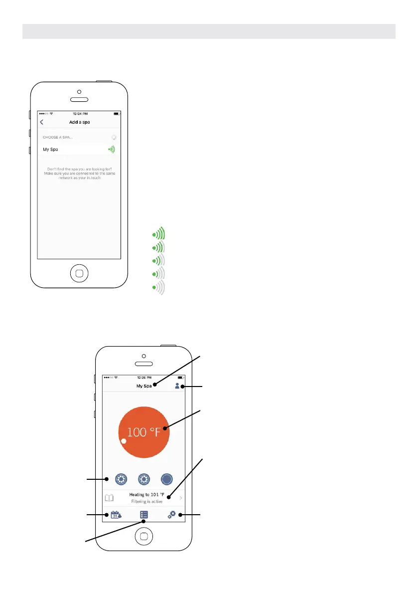 illustrated on the Select a spa page. There are 5 possibile states: