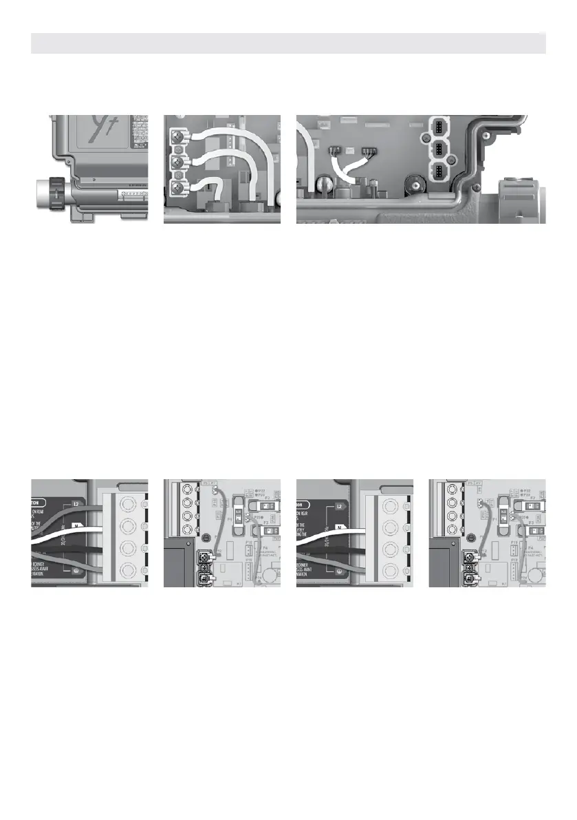 All heater connections are accessible when the cover is removed. Connections include the in.flo dry-fire protection, hi-limit/