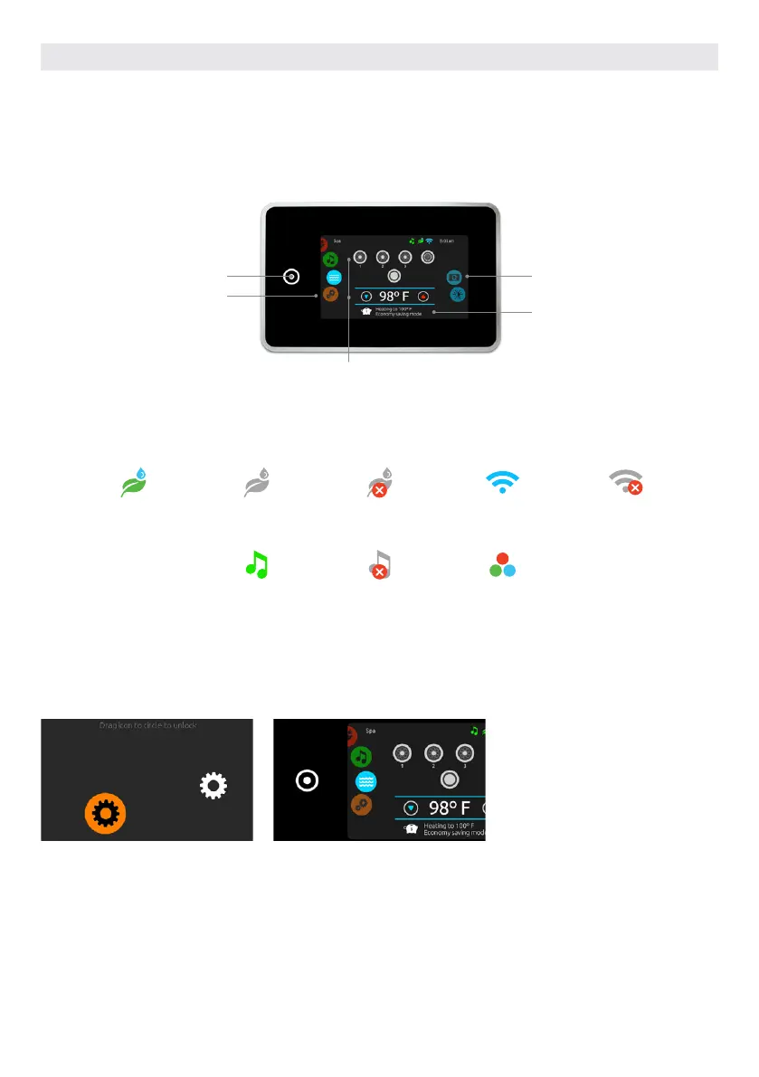 interactive display icons and on-screen messages are all elements of the Smart Touch user interface designed to let hot tub users