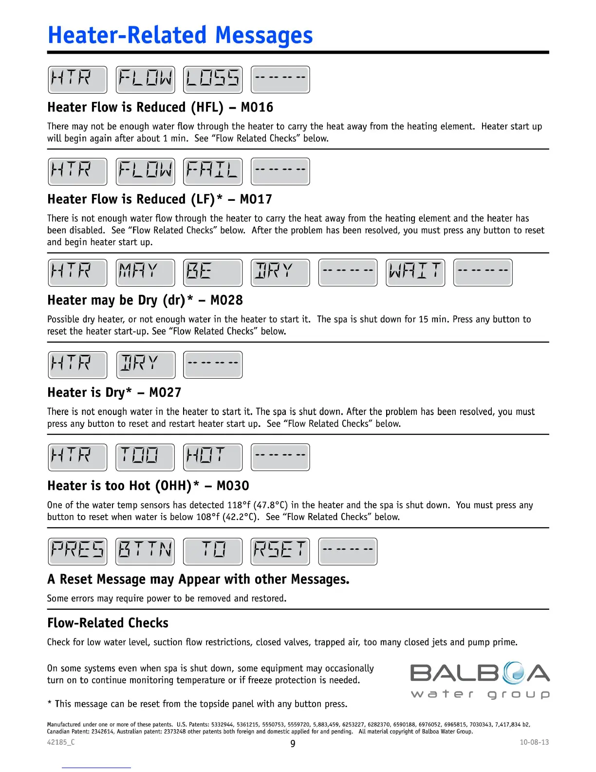 Wellis Venus - Heater System Error Messages; Heater Flow and Dryness Errors; Heater Overheating Errors