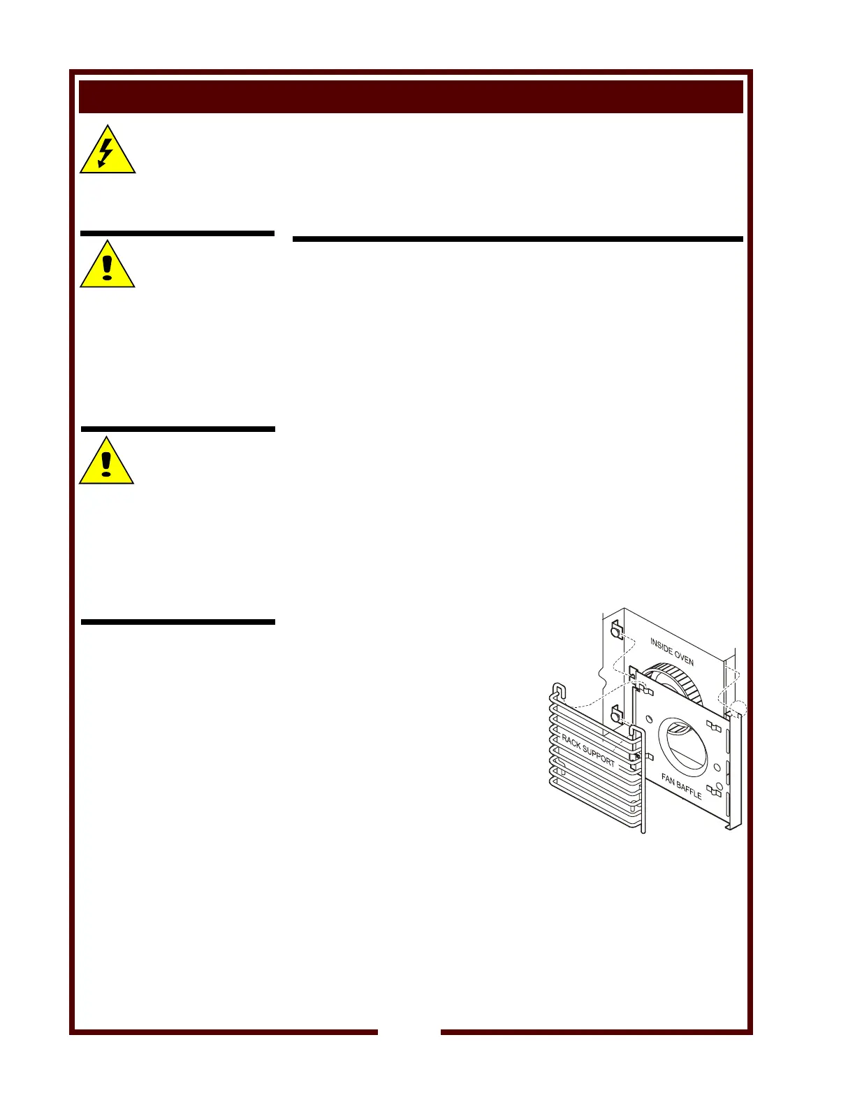 2. Remove racks and rack supports. Remove fan baffle.