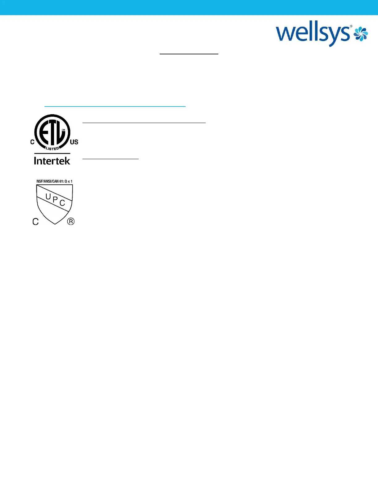 The Wellsys i12 system is certified by IAPMO R&T against NSF/ANSI/CAN 61: Q ≤ 1,