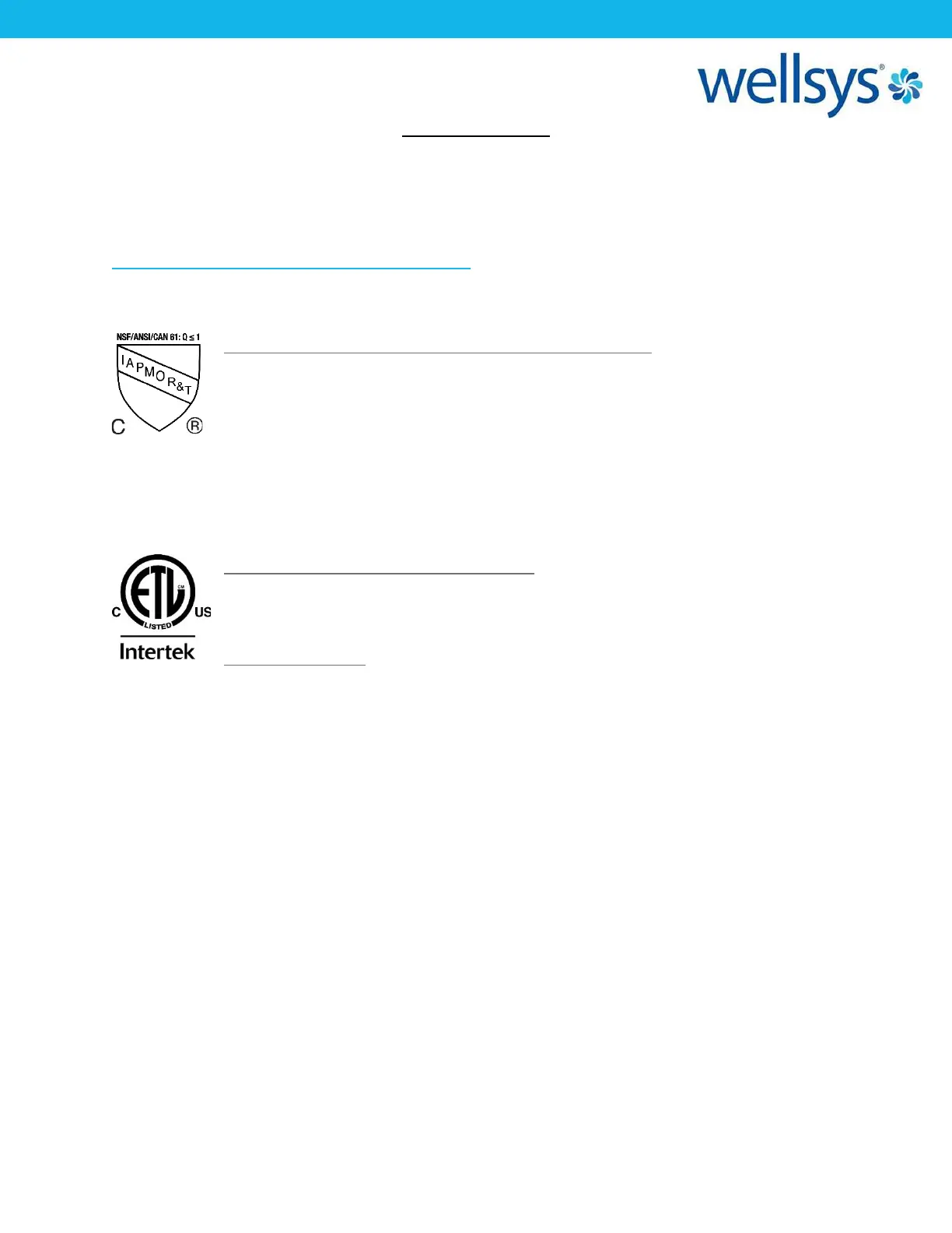 The Wellsys W9 is certified by IAPMO R&T against NSF/ANSI/CAN 61: Q≤1,