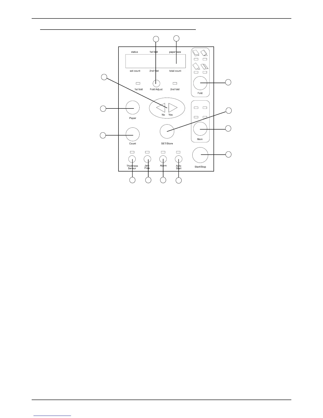 12. Jam free button : automatic removal of paper jam at folding roller or press roller.