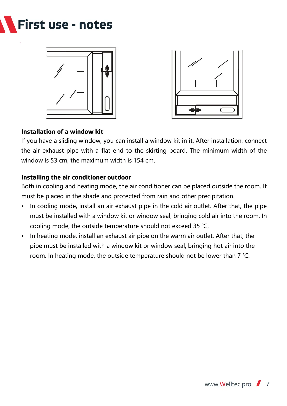 room. In heating mode, the outside temperature should not be lower than 7 ℃.