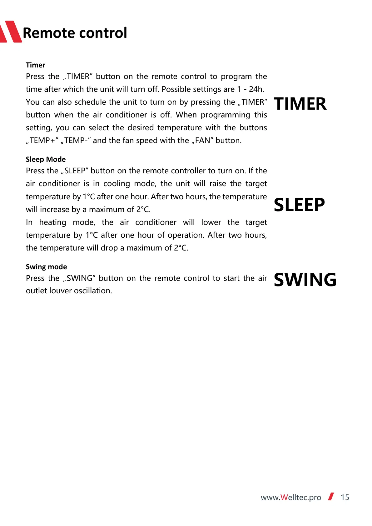You can also schedule the unit to turn on by pressing the „TIMER”