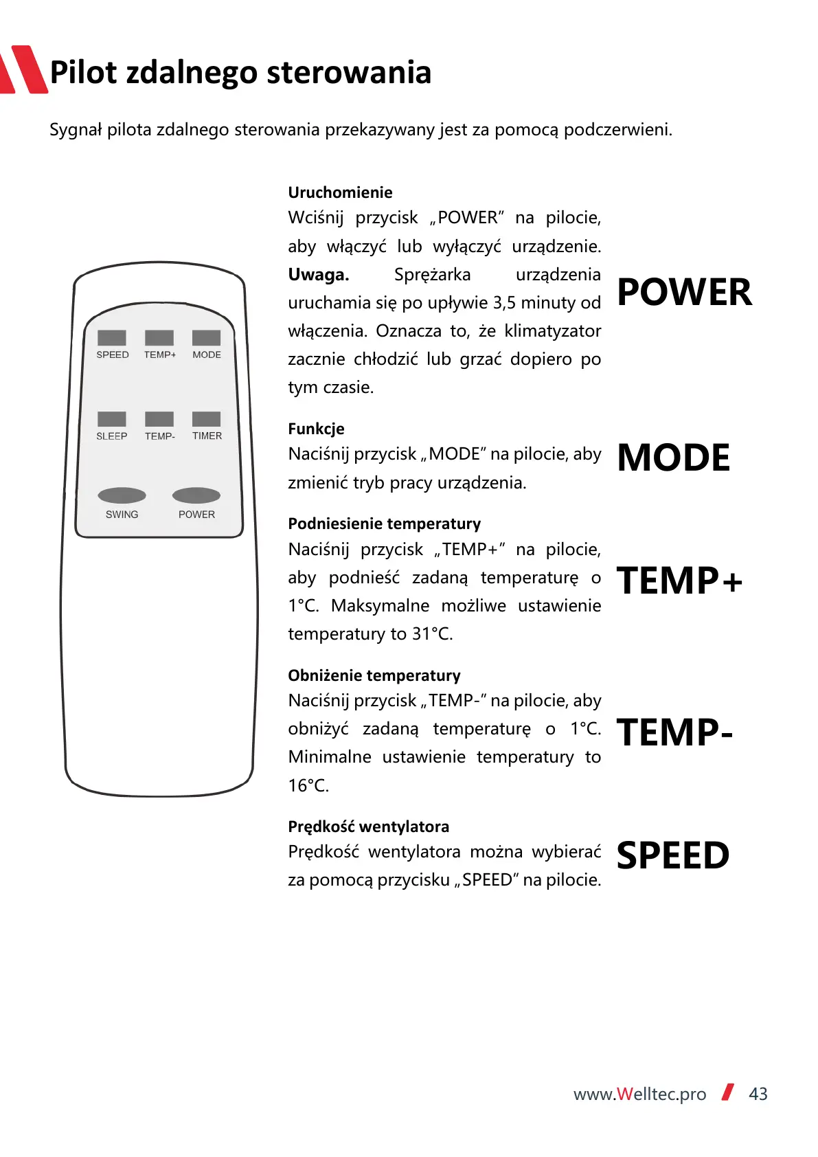 Naciśnij przycisk „TEMP-” na pilocie, aby