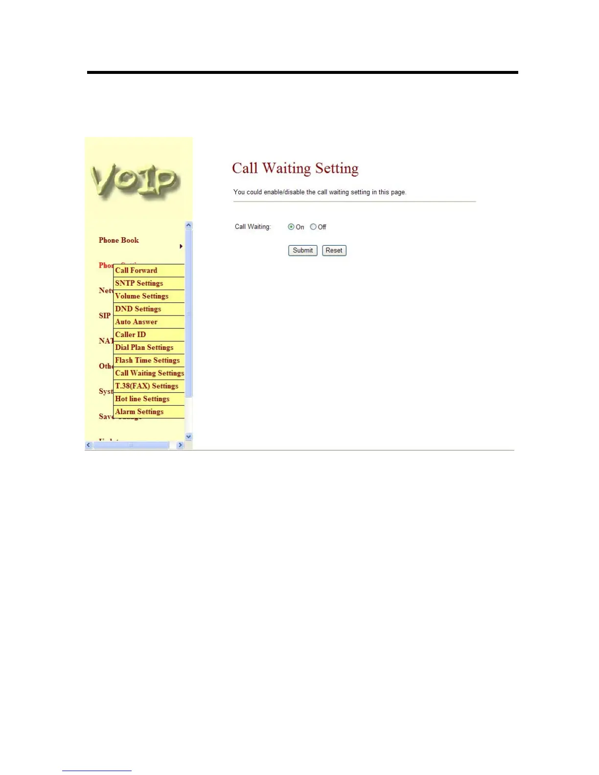 3.4.10 Call Waiting Setting function: You can Enable/Disable the Call Waiting function, When you