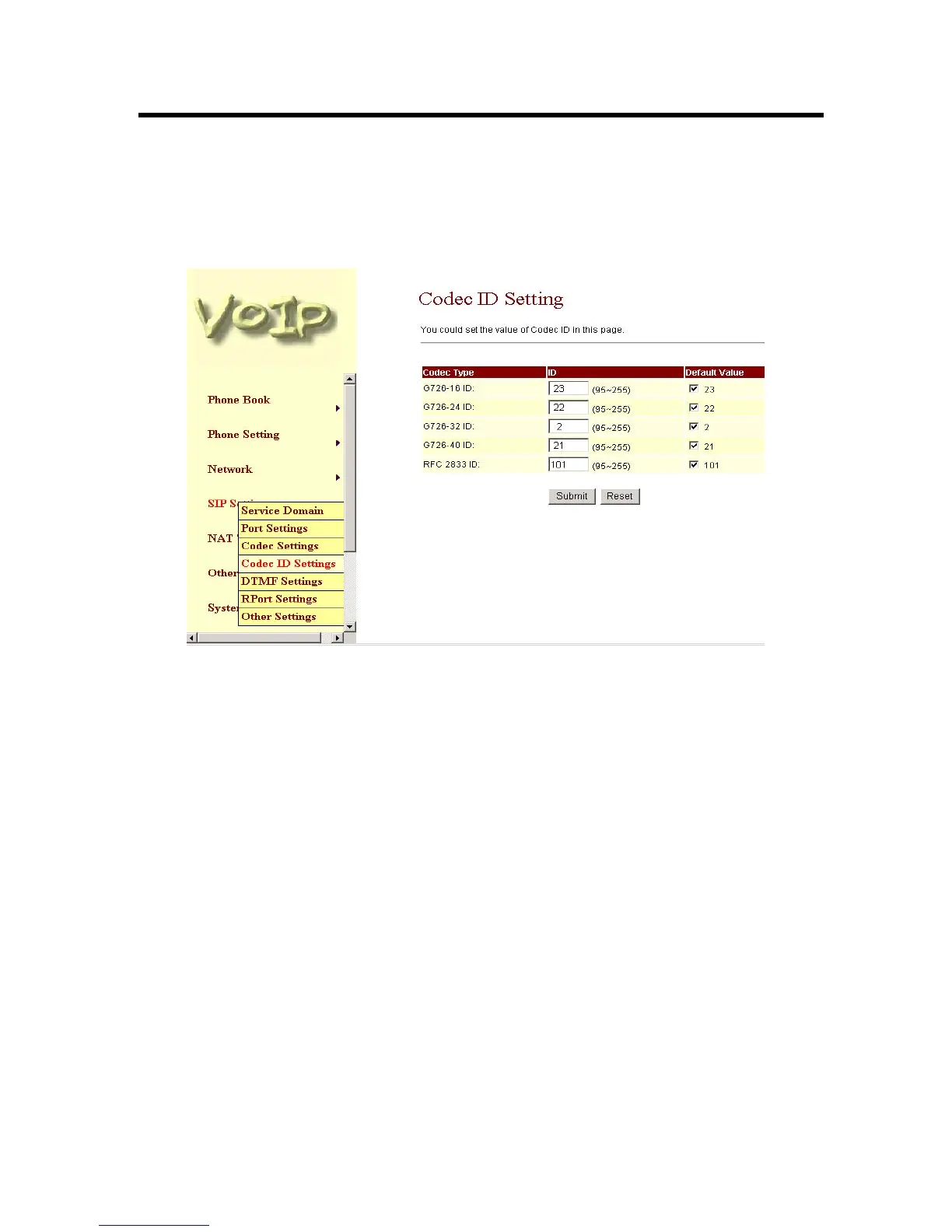 3.11.6 Codec ID Setting: Sometimes 2 VoIP device with different Codec ID will cause the