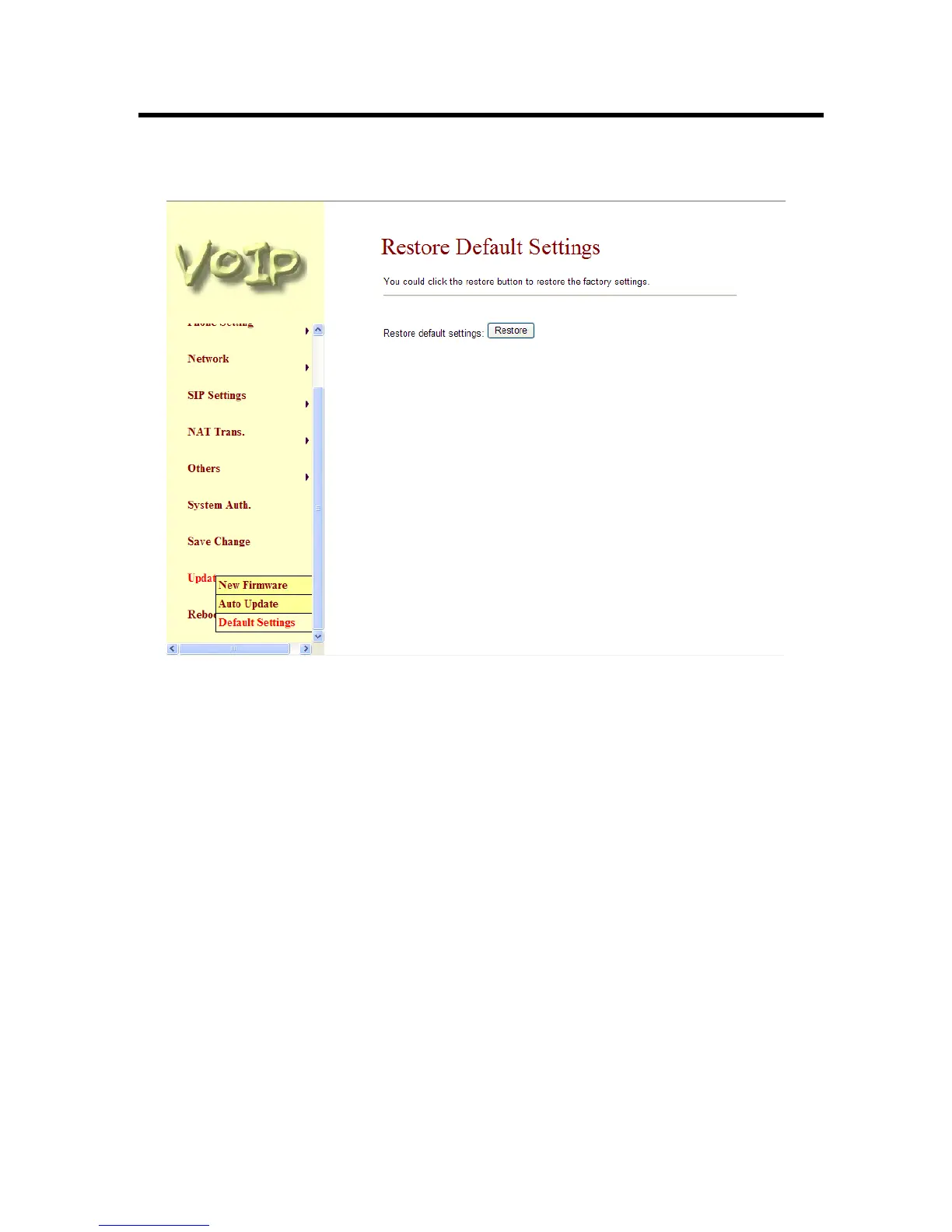 3.17.3 In Default Setting you can restore the TA to factory default in this page. You can just click the