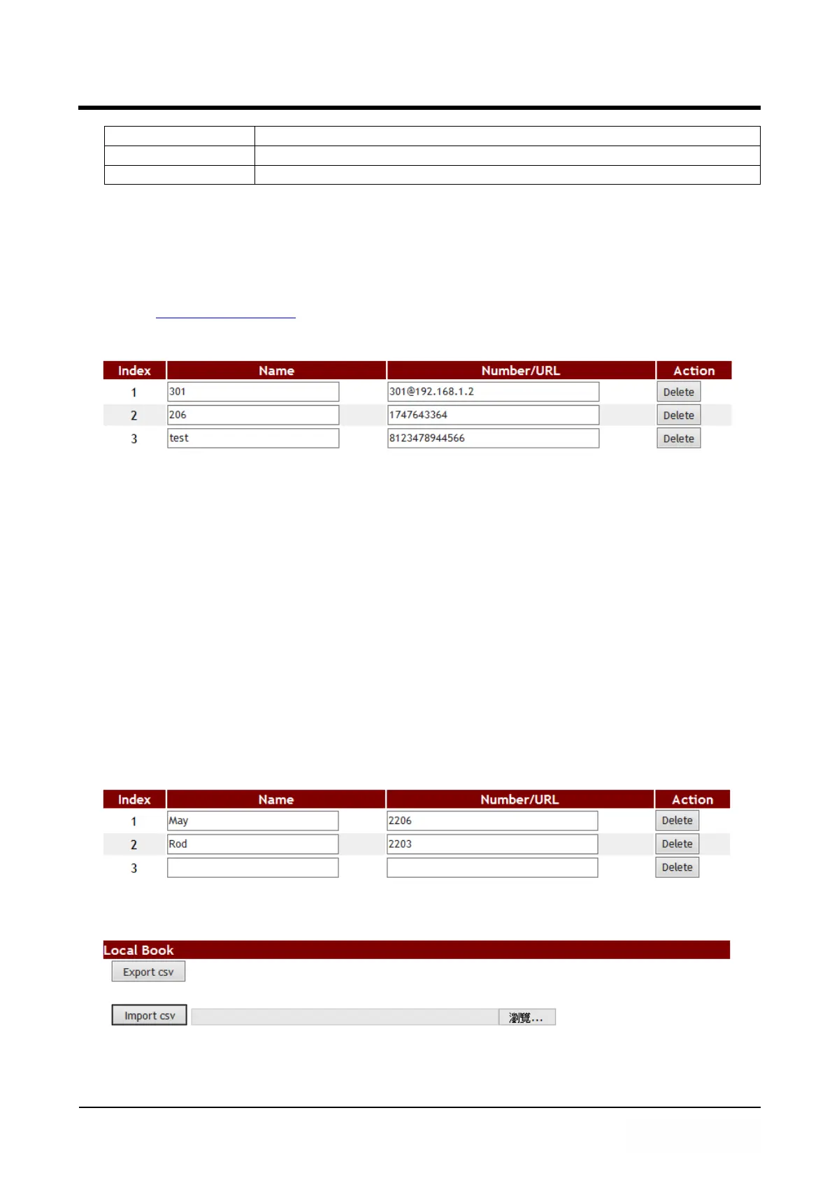 Step 1: In [Phone Book Setting] web page, the page have two numbers data. (See