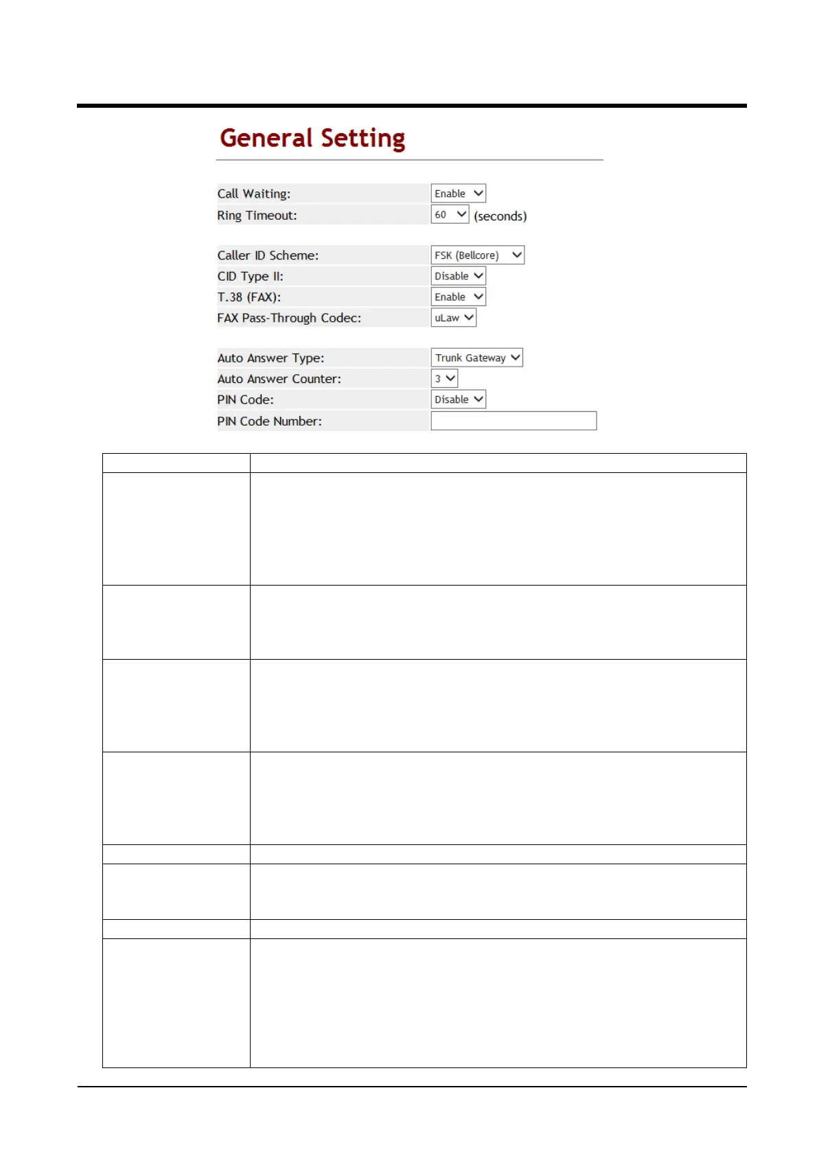 T.38 (FAX) Default is Enable to support T.38 FAX transmission function.