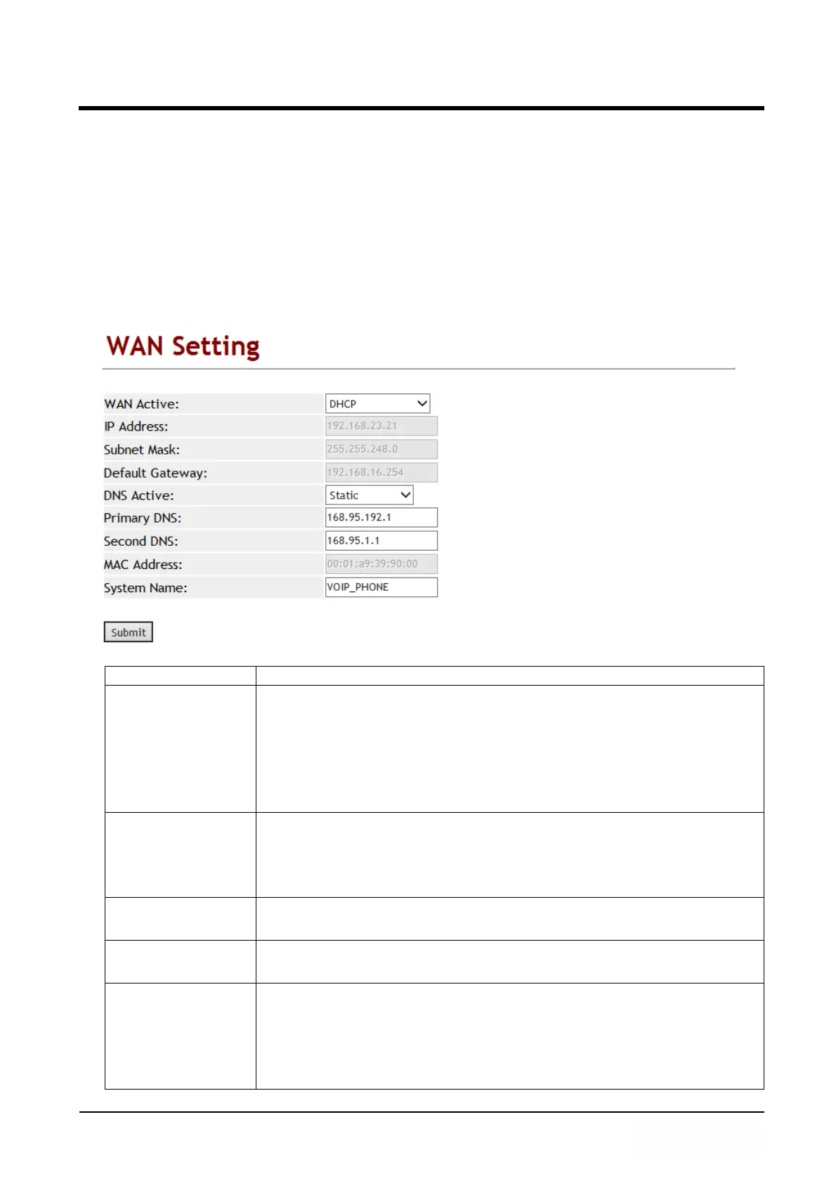 WAN Active Default: DHCP Client. Setup the network connecting type