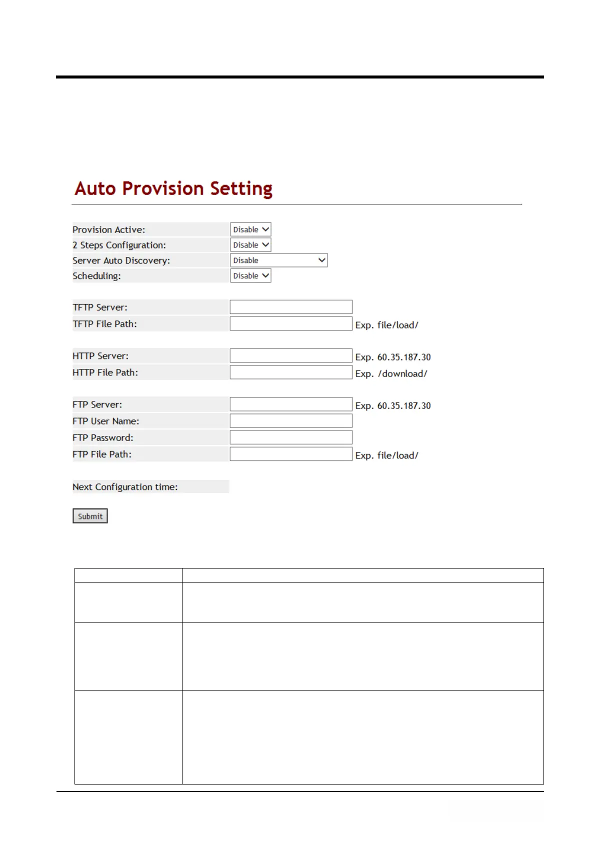Default: Disable; DHCP TFTP Option 66 (TFTP): DHCP Server will